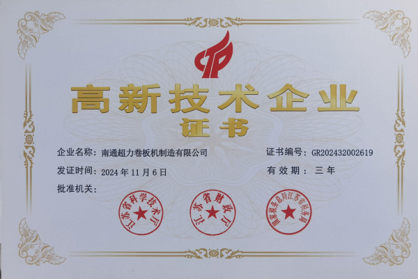 南通超力卷板機制造有限公司,國家高新技術(shù)企業(yè),中國卷板機機床專(zhuān)業(yè)設計、研發(fā)與制造企業(yè)。公司承擔國家火炬計劃項目3項,《JB/T12830-2016/數控二輥卷板機》、《JBCPZT0758-2016/數控矯圓機》行業(yè)標準起草單位,中國鍛壓協(xié)會(huì )會(huì )員,擁有W10、W11和W12等出口產(chǎn)品質(zhì)量許可證。