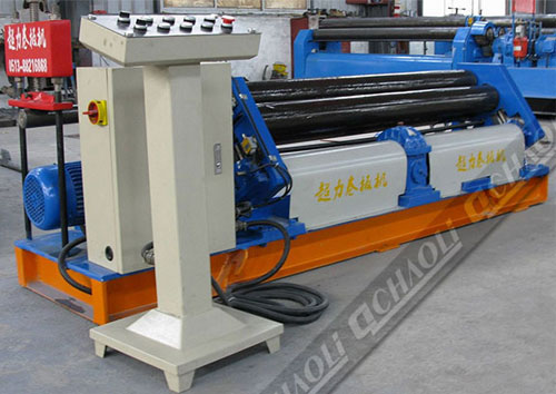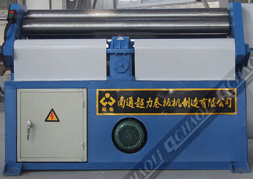 該機結構型式為三輥非對稱(chēng)式,下輥為主傳動(dòng),并做垂直升降運動(dòng),以便夾緊板材。通過(guò)下輥齒輪與上輥齒輪嚙合,同時(shí)作為主傳動(dòng),側輥作傾升降運動(dòng)。具有預彎、卷圓多重功能,結構緊湊操作維修方便。